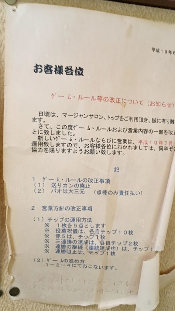 以前行った健康麻雀あしのに似ていました。お店の中が個室で全部区切られている感じ。