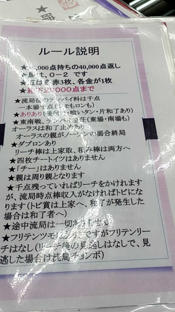 ルールは静岡店と同じとのことで、レートも同様に0.3と0.5の2つがありました。