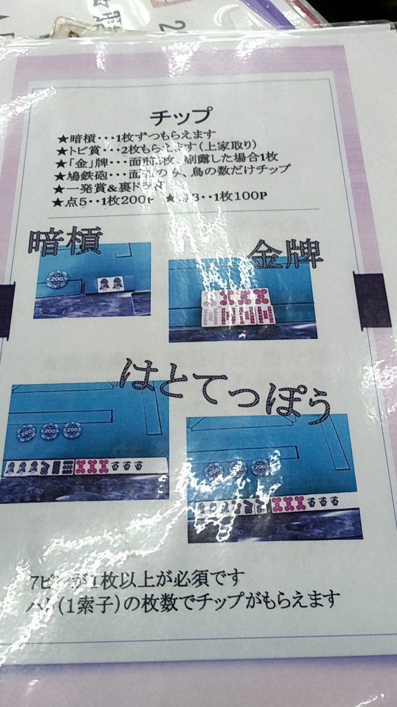 ・祝儀は一発、裏ドラ、鳴金が100、門前金が200