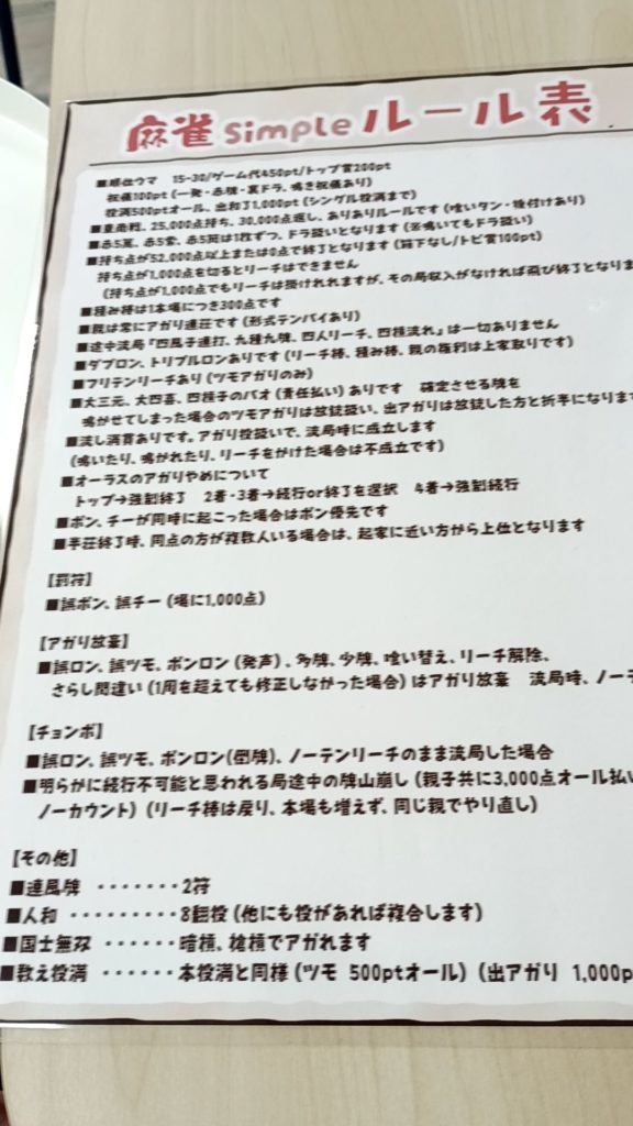 ゲーム代が450ということもあり、いったいどんなルール、レートなんだろうかと色々想像しながらでしたね。