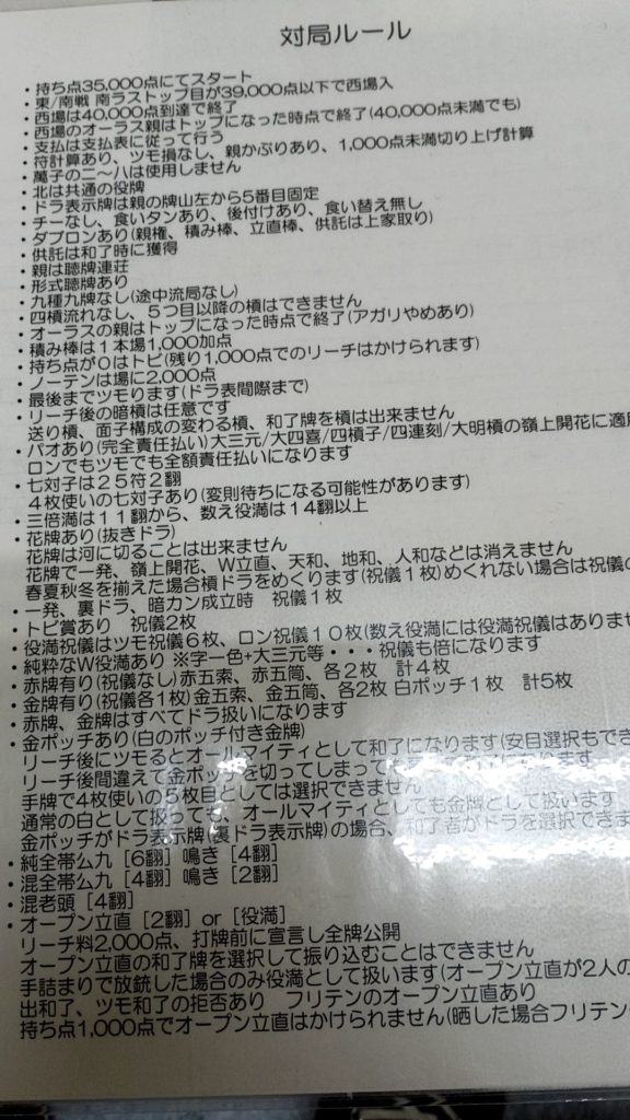 最近健康麻雀しか打ってなかったので本当に久しぶりのサンマという感じでしたが、結果は