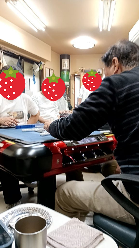 卓に入れることになりましたが、最初からほぼラス半ということにしました。4人回しは1ゲーム時間がかかることがあるので、2ゲーム打つとまじめに飛行機に間に合わないケースがあるからです。