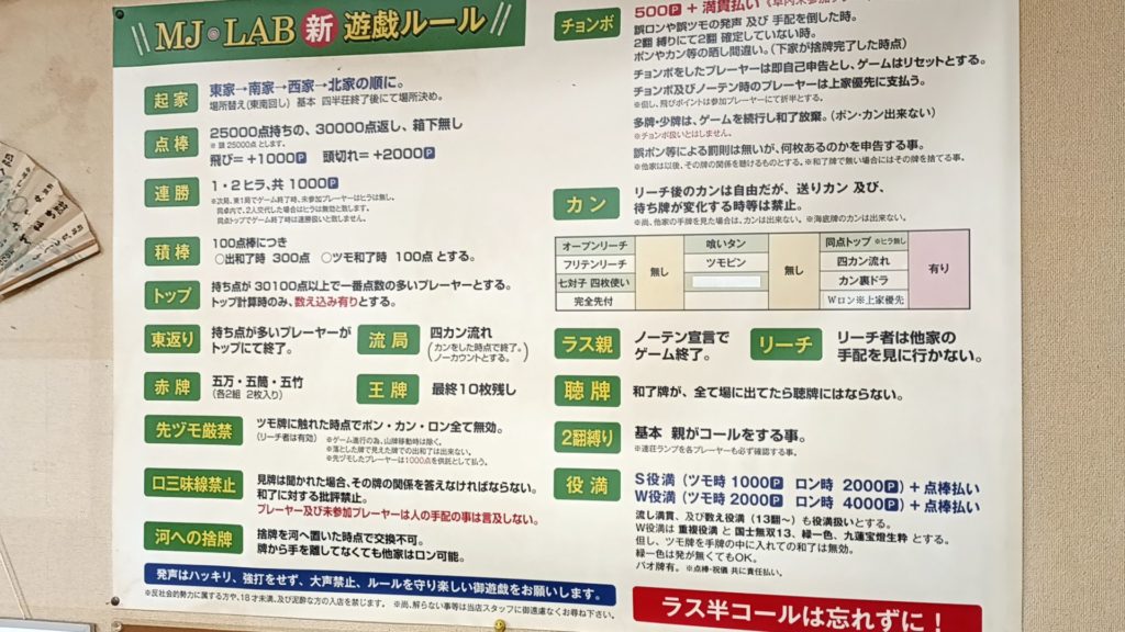 壁にはルール表が書いてありましたが、とりあえず聞いた話を箇条書きします。
