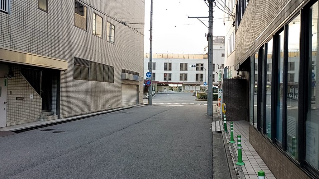 奥にあるのが駅なんですが、本当にこのくらい歩くとすぐにお店が出てきます。