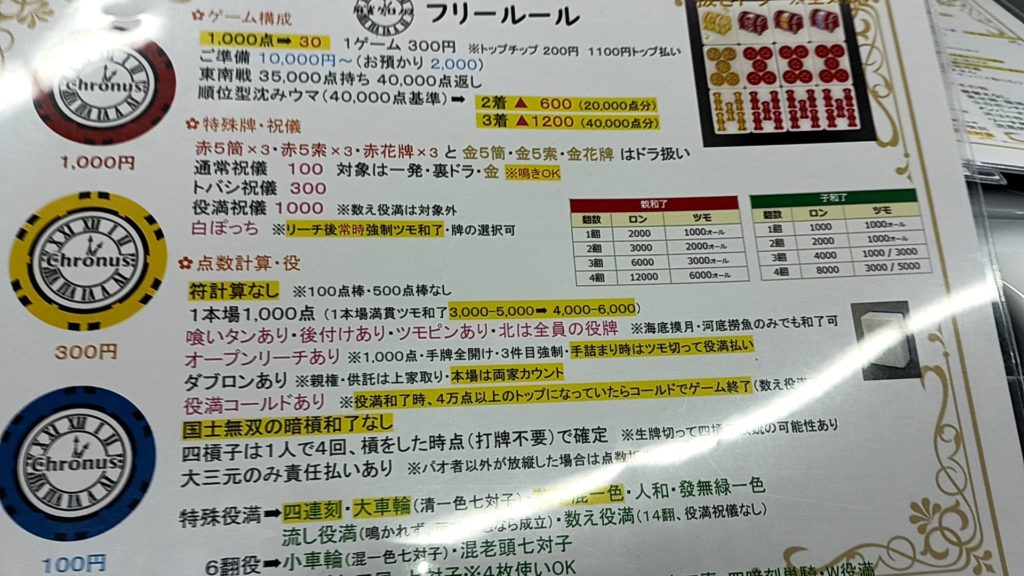クロノスはアリアリで優し目ルールのサンマのお店になります。