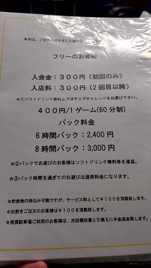 実際に1ゲーム400円という料金設定で普通にノーレートフリーでした。