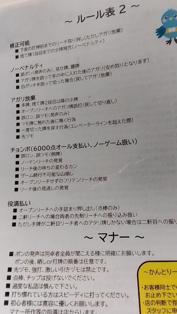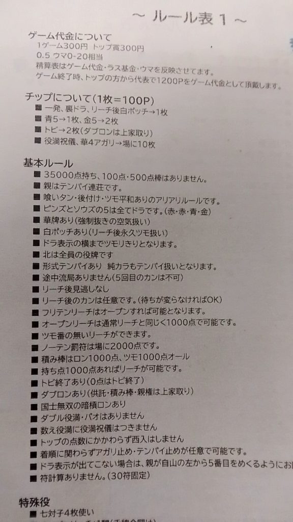 ルールはおそらくカントリーの他のお店と同じだと思いますが、アリアリルールのオーソドックスな奴です。