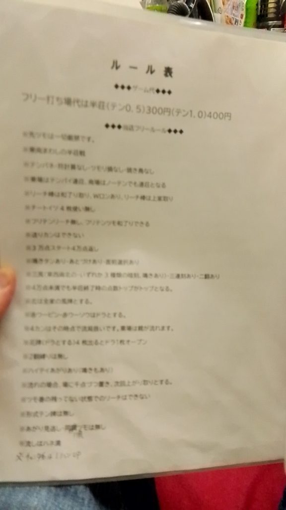 この時いたスタッフがなかなかの人物で、自分が雀荘巡りにおいて一番こよなく愛してやまないキャラクターの方でした。地元密着型雀荘にいて、地域の多くの雀荘を知り尽くしていて、雀荘巡りという趣味を全肯定してくれて、本人も麻雀が大好きなのが雰囲気からにじみ出ているタイプ。